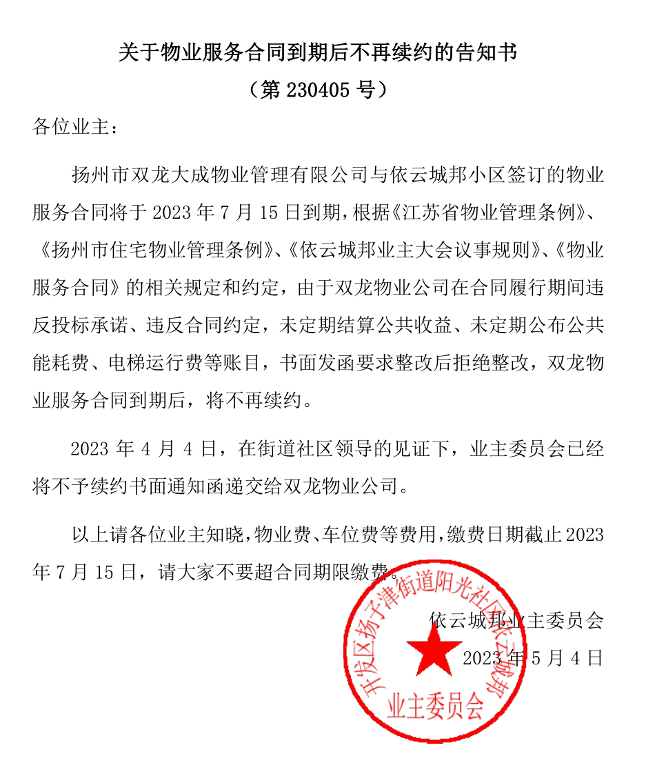 “2023年5月4日-告知全体业主不再与双龙物业续约不要超期缴费” 的相关文章