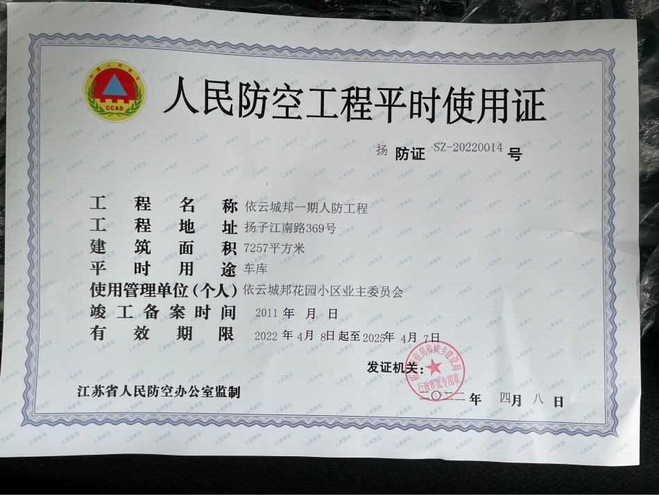 “2022年4月8日依云城邦业委会取得一期人防车库平时使用权证” 的相关文章