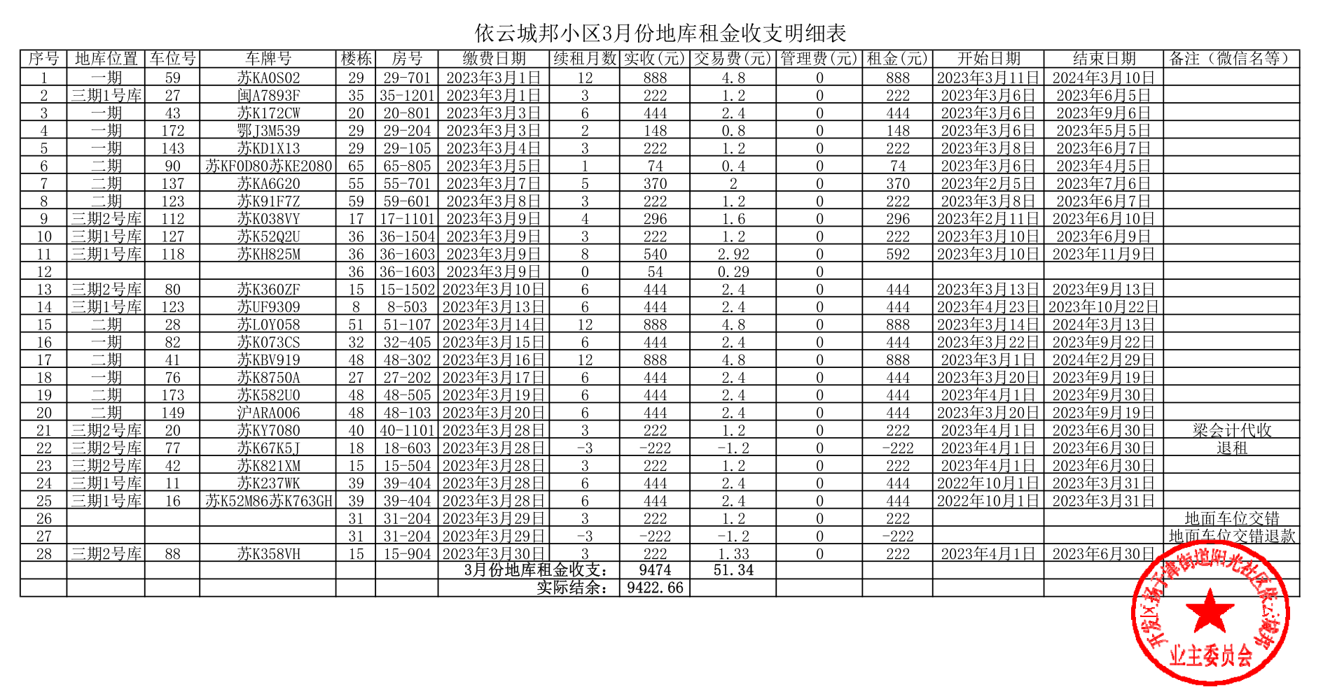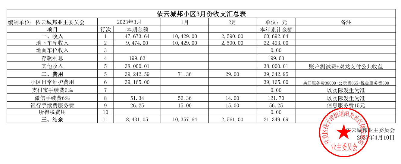 “2023年4月10日-依云城邦3月份地库车位租金和其他账目公布” 的相关文章