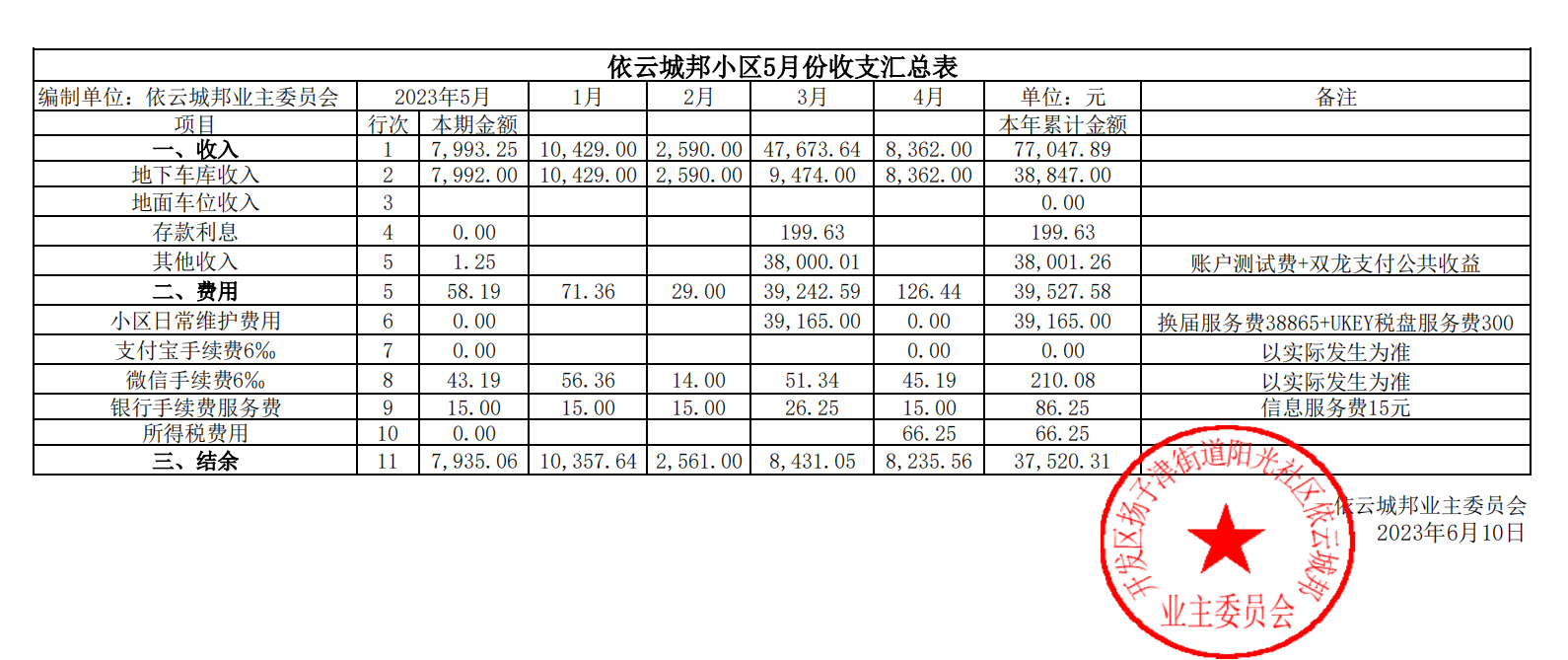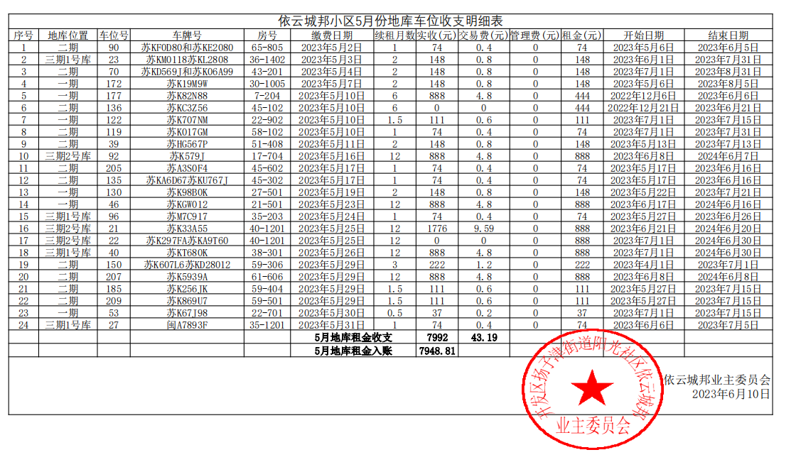 “2023年6月10日-依云城邦5月份地库车位租金账目公布” 的相关文章