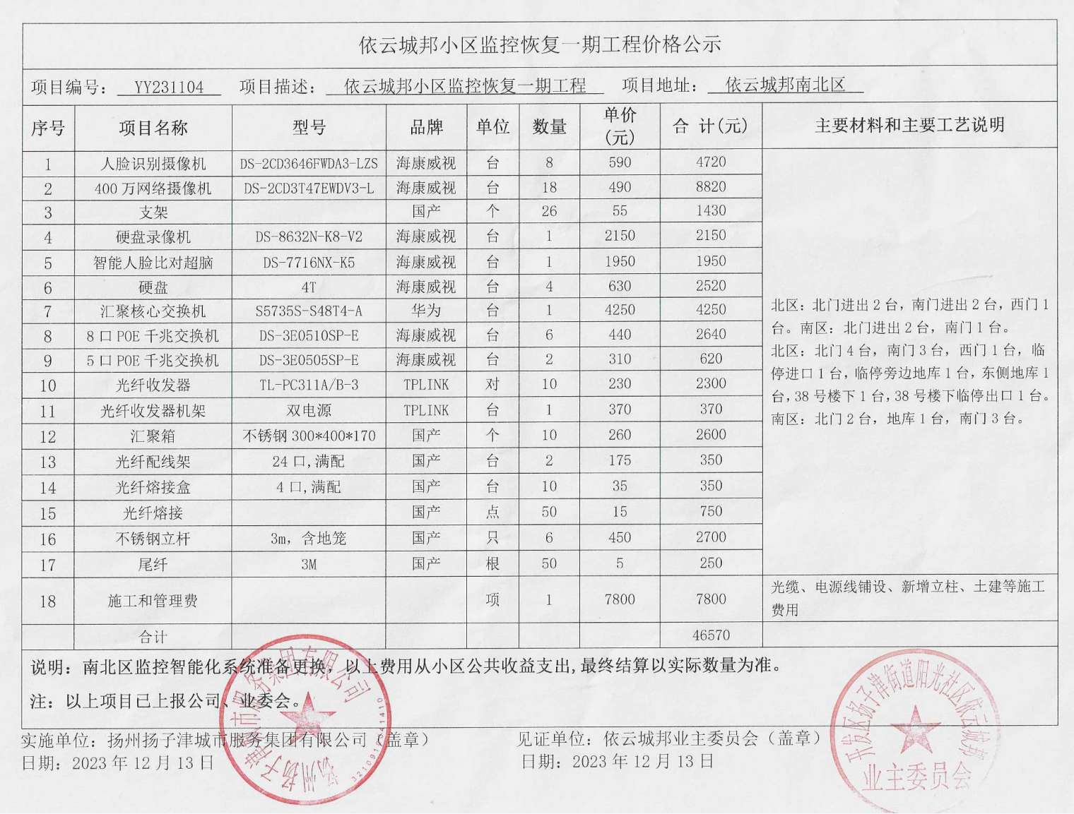 “2023年12月14日-依云城邦小区监控恢复一期工程价格公示” 的相关文章