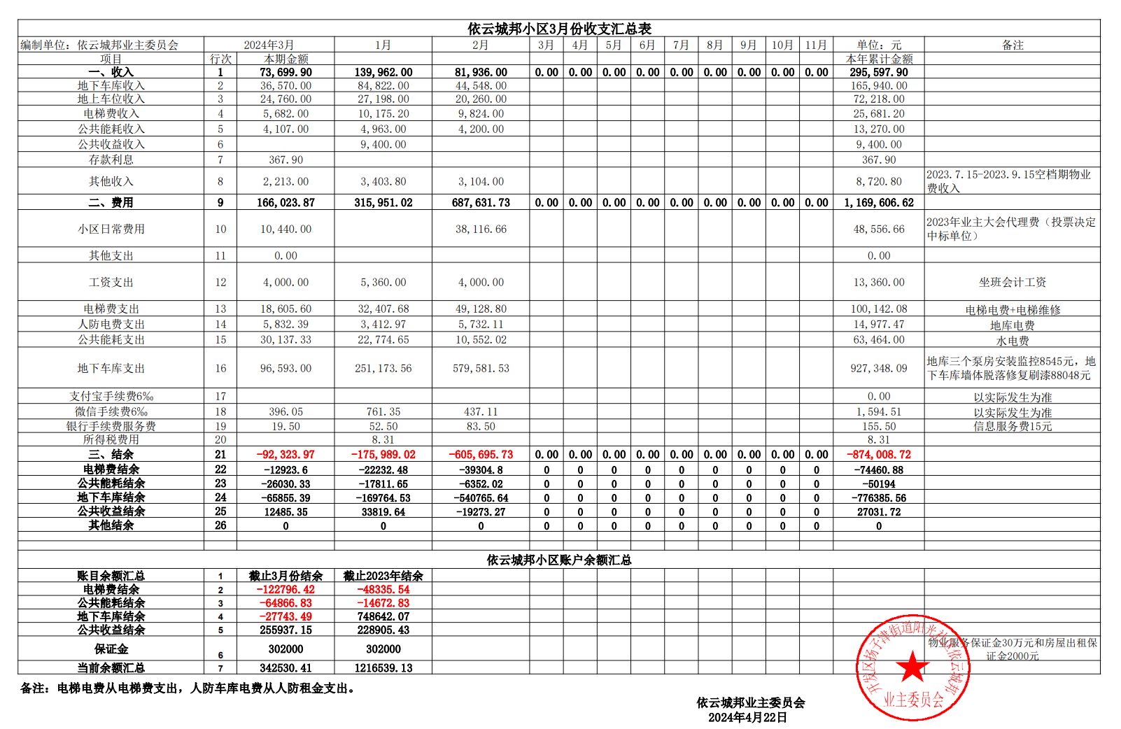 “2024年4月22日-依云城邦小区3月份账目公示” 的相关文章